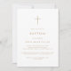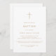 Este convite para batismo com zruz de tipografia dourada é perfeito para um batismo de bebê moderno. O design simples apresenta tipografia clássica minimalista dourada e branca com um toque rústico boho. Customizável em qualquer cor. Mantenha o design minimalista e elegante como está, ou personalize-o adicionando seus próprios gráficos e arte.