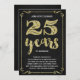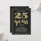 Este convite de festas de aniversário de na moda 25 de casamento, sujo, apresenta tipografia de vintage, floresces elegantes, caligrafia com script de pincel, folha de ouro falsa, e um fundo preto chic.