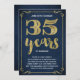 Este convite de festa de aniversário de casamento de 35 anos, sofisticado e elegante, apresenta tipografia vintage, floreios elegantes, caligrafia de pincel, folha de ouro falsa e um fundo azul marinho chic.