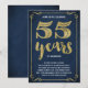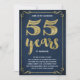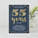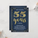 Este convite de festa de aniversário de casamento de 55 anos, sofisticado e elegante, apresenta tipografia vintage, floreios elegantes, caligrafia de pincel, folha dourada falsa e um fundo azul marinho chic.