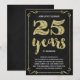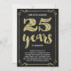 Este convite de festa de aniversário de casamento de 25 anos, sofisticado e elegante, apresenta tipografia vintage, floreios elegantes, caligrafia de pincel, folha dourada falsa e um fundo preto chic.