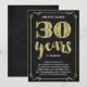 Este convite de festa de aniversário de casamento de 30 anos sofisticado e elegante apresenta tipografia vintage, floreios elegantes, caligrafia de pincel, folha dourada falsa e um fundo preto chic.