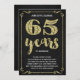 Este convite de festa de aniversário de casamento de 65 anos, sofisticado e elegante, apresenta tipografia vintage, floreios elegantes, caligrafia de pincel, folha dourada falsa e um fundo preto chic.