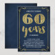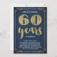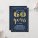 Este convite de festa de aniversário de casamento de 60 anos, sofisticado e elegante, apresenta tipografia vintage, floreios elegantes, caligrafia de pincel, folha de ouro falsa e um fundo azul-marinho chic.