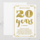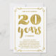 Este convite de festa de aniversário de casamento de 20 anos, sofisticado e elegante, apresenta tipografia vintage, floreios elegantes, caligrafia de pincel, folha metálica dourada falsa e um fundo branco chic.