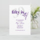Tipografia em negrito com caligrafia 50 é convites de festa de aniversário elegantes em roxo e branco. O verso apresenta um fundo totalmente roxo com manchas/bolhas brancas para imitar as bolhas no vinho e champanhe para celebrar como envelhecemos como um vinho fino. Todo o texto é completamente personalizável.