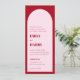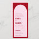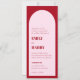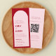 Este convite artístico moderno apresenta uma tipografia ousada. O design é rosa e vermelho, bloqueando as cores. Há um código QR no verso, que faz este convite todo-em-um. Elegante e simples.