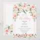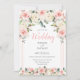Convite de casamento simples, mas doce e lindo, com minúsculas flores rosadas de cor de blush rodeadas por tons pastel de verde botânico para dar a este convite um visual elegante e charmoso. O texto "Casamento" em rosa é muito bonito para este convite. Eu adorei este design e gostei de criá-lo para você. Veja os itens complementares disponíveis em nossa butique. 100% de satisfação do cliente na Zazzle.
