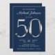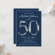 Convite Tipografia marinho Blue Silver 50ª Festa de aniver