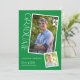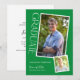 Este convite de formatura apresenta uma tipografia elegante e 2 fotos para um design moderno. Este convite oferece texto branco em um fundo verde e texto personalizado, no verso, para os detalhes da sua festa.