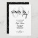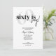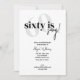 A tipografia a negrito com a caligrafia 60 é convites de festas de aniversários sexy em preto e branco. As costas apresentam um fundo preto com manchas brancas/bolhas para emular as bolhas de vinho e champanhe para celebrar como envelhecemos como se encontrássemos vinho. Todo texto é completamente personalizável.