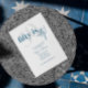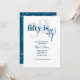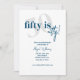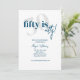 Tipografia em negrito com caligrafia 50 é um convite de festa de aniversário bacana em azul e branco. O verso apresenta um fundo totalmente azul com manchas/borbulhas brancas para imitar as bolhas no vinho e champanhe para celebrar como envelhecemos como um vinho bom. Todo o texto é completamente personalizável.