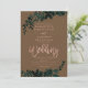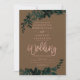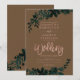 Rosa dourado Convite de casamento Floral castanho com folhagem de cor verde pintada manualmente. O fundo de cor castanho é totalmente personalizável