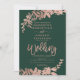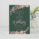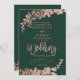 Rosa dourado Convite de casamento verde floral com folhagem de ouro rosa pintada à mão. O fundo verde é totalmente personalizável