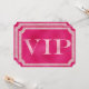 Este convite de festas personalizado apresenta um tíquete VIP glamouroso com uma folha cor-de-rosa e um design brilhante. O plano de fundo apresenta uma textura de folha rosa brilhante e quente, com um quadro de estilo brilhante brilhante. "VIP" é impresso na parte frontal em uma fonte grande, rosa. A parte de trás do convite contém as informações do evento.