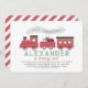 Este belo "tudo a bordo" feriado de Natal 1 rua/primeiro convite de aniversário apresenta um fundo branco com trem a vapor em vermelho. O verso apresenta um fundo branco com faixas diagonais vermelhas. Personalize-o para as suas necessidades. Você pode encontrar produtos correspondentes na minha loja.