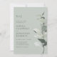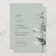 Tudo em Um Convite de Casamento Botânico Eucalyptus.. Nosso convite de casamento botânico único "All in One" apresenta uma elegante ramificação de eucalipto com aquarela em tons de sábio e verde empoeirado no texto do convite ao seu lado. A parte de trás do convite contém todos os detalhes que você normalmente veria em cartas separadas dentro do pacote de casamento. Este convite de casamento moderno, à frente e ao fundo, foi concebido para ser elegante e consciente do orçamento... para não mencionar a poupança de tempo. Na parte de trás, há também um modelo de gráfico de código QR que você pode substituir por seu próprio código (ou excluir se você não planeja usar um). Todo texto de exemplo pode ser facilmente revisado com suas próprias informações sobre o modelo de personalização. Uma versão de orçamento com papel semismalho de 110 lb também está disponível no mesmo design.