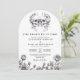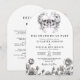 Este convite de casamento de crânios florais góticos, preto e branco, até que a morte nos separe, pode ser personalizado com suas informações e detalhes de casamento na tipografia moderna. Projetado por Thisnotme©