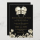 Este convite de casamento de crânios florais góticos e negros e dourados 'até que a morte nos separe' pode ser personalizado com seu site de informações e casamento Código QR no verso. Projetado por Thisnotme©