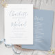 Apresentando nomes de estilo de assinatura, este elegante convite de casamento azul empoeirado pode ser personalizado com todas as suas informações especiais sobre o dia do casamento, incluindo seu RSVP, acomodações e detalhes adicionais. Projetado por Thisnotme©