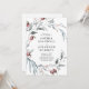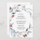 Tudo em um código QR Winter Berries Greenery Wreath Wedding Convite. Nosso convite para o casamento "frente e trás" de frutas de inverno e terra verde apresenta uma delicada camada artística de água verde de cinza de prata de inverno pontilhada com bagas vermelhas da época de Natal moldando seu texto de convite personalizado. A parte de trás do convite contém todos os detalhes que você normalmente veria em cartas separadas dentro do pacote de casamento, incluindo o código QR do seu site de casamento — que você pode criar diretamente no modelo de Personalização do Zazzle. Este estilo moderno, tudo num convite de casamento, foi concebido para ser elegante e consciente do orçamento... bem como para poupar tempo. Todos os textos de exemplo em ambos os lados podem ser facilmente revisados com suas próprias informações sobre o modelo de personalização.