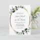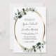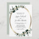 Metálico Dourado Eucalyptus Tudo em um Código QR White e Convite de Casamento de Sage... Nosso convite de casamento botânico luxo, de dois lados, apresenta uma estrutura oval metálica dourada embelezada com folhas de eucalipto abarrotadas de esmeraldas sobre um fundo branco nítido. A parte traseira do convite contém todos os detalhes que você normalmente veria em cartas separadas no pacote de casamento. Este convite de casamento ao estilo moderno foi concebido para ser elegante e consciente do orçamento... para não mencionar a poupança de tempo. No verso há também um modelo gráfico de código QR que você pode substituir por seu próprio código simplesmente digitando no URL do seu site de casamento... no modelo de personalização onde você também revisa o texto de exemplo com seus próprios detalhes.