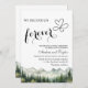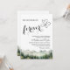 Um convite elegante para o casamento com montanhas de aquarelas e pinheiros que você pode personalizar com seus detalhes.