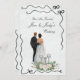 An elegant wedding invitation showcasing a bride and groom in formal attire, framed by graceful ribbon borders. The design is enhanced with romantic candlelight and a lush arrangement of white roses and eucalyptus, creating a timeless and sophisticated celebration announcement.