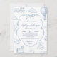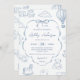 Toile De Jouy Blue Bow Baby Shower Party Invitation
