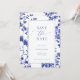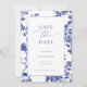 Convite Toile Floral Azul do Marinho Elegante Salvar a Dat