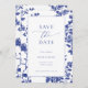 Belo e elegante casamento azul-marinho floral. Salve a data. Totalmente personalizável com nomes, datas, local e cores para corresponder ao seu tema de casamento.