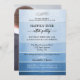 Um design moderno de convite de casamento ou pós-casamento com um design de pintura em aquarela listrada azul sobre tom com um revestimento prateado. No verso está a sua foto personalizada. Lindos para recepção ou celebração pós-casamento.
