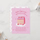 Um convite de festas giro-doce, com uma fatia de bolo de safra pintada manualmente, com glacé rosa e vermelho, cerejas e arcos cor-de-rosa. Este bolo de aniversário em estilo coquete e o tema "Tome seu bolo e coma dois" está em tendência agora. Estas ilustrações desenhadas à mão são criadas por mim, Carmia Jordaan.