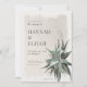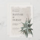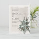 Estes convites de casamento de 5" x 7" apresentam um buquê suculento com sotaques de flor secos em um fundo de textura meteorológica. Os acionistas começam com, "Por favor juntem-se a nós para o casamento de", os nomes dos casais de casamento, data e hora, local com endereço e, "recepção a seguir."