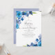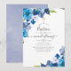Convite de batismo floral em tons pastel de azul com tipografia de caligrafia elegante, projetado para ser personalizado rápida e facilmente de acordo com os detalhes do seu evento.