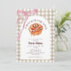 Celebre a chegada do seu pequeno com este charmoso "A Bun" no Convite para Chás de fraldas Forno. Apresentando uma ilustração de cinamão de aquarela, fundo macio de gingham e um doce arco rosa, este design é perfeito para um chá acolhedor e animador. A frase "A Bun is in the Oven" acrescenta um toque lúdico, fazer-o ideal para chás de fraldas inspirados na comida, festas com temas de panificação ou celebrações neutras em termos de gênero. Este convite para na moda traz calor e personalidade ao seu evento enquanto cria entusiasmo para seus convidados. Uma escolha única para as mães a serem que adoram cozinhar, doces e detalhes químicos.