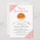 Há um pão no forno... e é extra tosta! 🍞 ❤️ Este convite para chá de fraldas de gingham vermelho traz vibrações piquenique e alegria cheia de trocadilhos para a sua celebração com um pão kawaii, texto suave japonês que diz "convite para o Chá de fraldas", e detalhes confortáveis que se sentem como um abraço caloroso. Perfeito para encontros rústicos cheio de riso, comida e entusiasmo em crescimento! Enviando sorrisos frescos de forno da minha cozinha rural no Japão, Junko 🍓