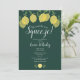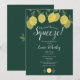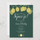 Com limões e folhagens em um fundo verde esmeralda, este convite de chá de noiva botânico fofo pode ser personalizado com as informações do seu evento especial e suas iniciais de monograma no verso. Criado por Thisisnotme©