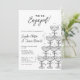 Celebre sua história de amor com este convite de noivado de torre de champanhe minimalista e sofisticado. A frente apresenta uma pilha desenhada à mão de taças de champanhe em desenho de linha preta, combinada com caligrafia estilosa e fontes serifadas. O verso apresenta três espaços para fotos para adicionar suas memórias de noivado favoritas, criando um toque pessoal e elegante. Ideal para casais modernos que planejam um soirée de coquetel, celebração no terraço ou jantar sofisticado.
