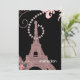Convite torre de eiffel preto-e-rosa-cinza