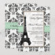 Convite Torre Eiffel Casamento Verde Menta e Preto Damask