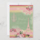 Os convites bonitos do doce 15 da festa de aniversário de Quinceañera com uma torre Eiffel glamoroso, elegante de France Paris do vintage alteraram o design da arte com uma colagem floral do chique bonito, romântico no verde cor-de-rosa e da hortelã com um candelabro francês antigo, a torre Eiffel, uma coroa, os rosas bonitos, as outras flores, e elementos decorativos ornamentado bonitos. Este na moda, design temático parisiense floral, feminino é na moda e moderno com um olhar do vintage. Os convites são ilustrados em ambos os lados. O chique, elegante, elegante convida, perfeito para primavera de uma menina o décimo quinto ou a festa de aniversário do verão. NOTE POR FAVOR: - Todos os convites em Zazzle têm imagens impressas do plano.