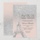 Convite Torre Eiffel cor-de-rosa-prateado Doce 16