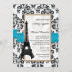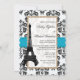 Convite Torre Eiffel de Casamento em Turquesa e Preto Dama