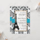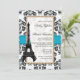 torre eiffel paris parisiense francêsnoiva e noivodamasco floral antigo vintagefrança elegante lindo formal femininopadrão sofisticado designerconvite de casamentojantar de festa compromisso aniversáriomoldura dourada rendilhadaazul turquesa preto branco