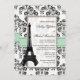 Convite Torre Eiffel de Casamento em Verde Hortelã e Preto