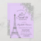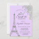 Convite Torre Eiffel de Paris,Drips, Sweet 16 Púrpura Leve