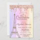Convite Torre Eiffel, Drips Rosa Dourado Ombre Quinceañera