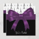 Convite de festa com design elegante em preto e branco da Torre Eiffel de Paris com laço de ameixa bonita. Este modelo de design funciona bem como um convite para festa de aniversário, coquetel, festa de feriado, festa corporativa, formal de gravata preta, baile de formatura em Paris, festa de aposentadoria, festa de formatura, despedida de solteira, festa de noivado, casamento, festa de Ano Novo e qualquer outra ocasião especial. Adicione seus detalhes na frente e/ou verso adicionando detalhes do evento, estilo de fonte, tamanho e cor da fonte e texto. Por favor, observe que todos os designs de convite que você encontrará no Zazzle são gráficos impressos em papel liso sem joias, laços, relevos, rebaixados ou peças ou partes adicionadas.
