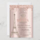 Convite Torre Eiffel,Tiara,Drips Rosa Dourado Sweet 16